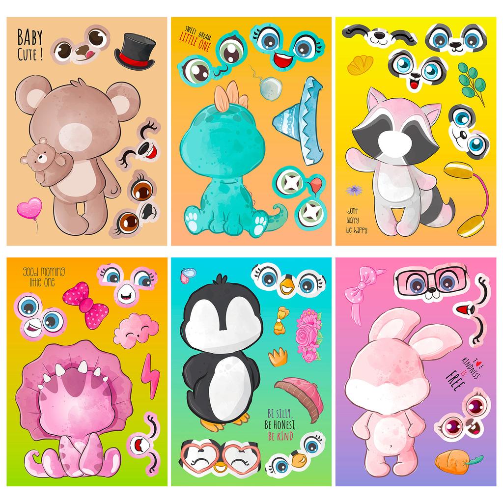 6 Pieces/pack of Small Animals Puzzle Stickers Cartoon Stickers Children's Creative Animal Puzzle DIY Stickers