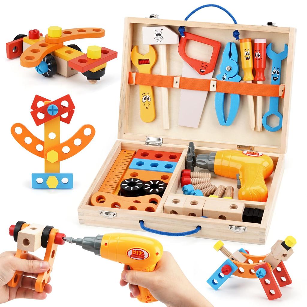 Toys for boys ages 3, 4, 5 and 6: All parts are made of safe materials that are child-friendly. It also comes with a wooden tool box for convenient storage, making it ideal for helping children develop the habit of tidying up. This is why it is a popular choice for 3-year-old boys as a birthday gift or toy!