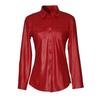 Women's Casual Short Long Sleeve Blazer with Breast Pocket Buttons Faux PU Leather Shirt Jacket — buy online with free worldwide shipping!