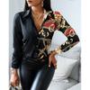 Women's Autumn Long Sleeved V-neck Color Blocked Retro Style Shirt, Loose and Elegant Casual Top
