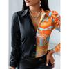 Women's Autumn Long Sleeved V-neck Color Blocked Retro Style Shirt, Loose and Elegant Casual Top — buy online with free worldwide shipping!