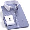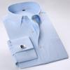 Men's Elegant French Cuff Spread Collar Striped Dress Shirt with Chest Pocket for Formal Business Wedding, Free Metal Cufflinks Included — buy online with free worldwide shipping!