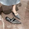 Sequins Black Slides with Heel Shoes Pointed Toe Women's Mules Slippers and Ladies Sandals Unique Korea Style Easy Wears Shoe 39