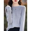 One-line Ready-to-wear Rolled Round Neck Hollow Wool Sweater for Women In Summer Loose Versatile Thin Wool Base Shirt for Women
