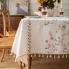 Jiexin European Style Embroidered Tablecloth - Coffee Leaves Design for Home Decor