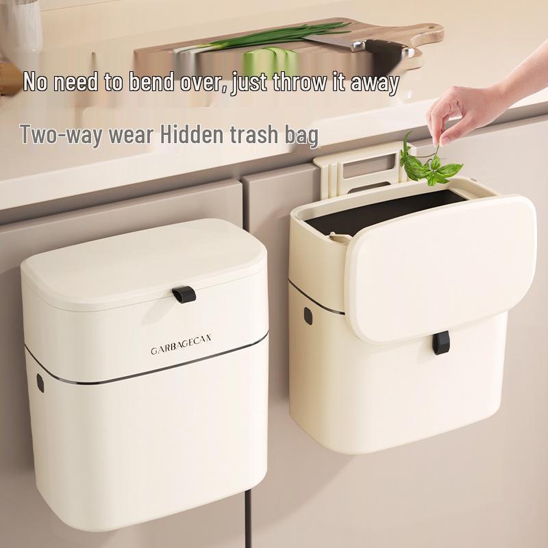 Kitchen Hanging Trash Can, Cream White Wall-Mounted with Lid, No-Marking Sticker, Household Cupboard Waste Basket. — buy products online with free worldwide shipping!