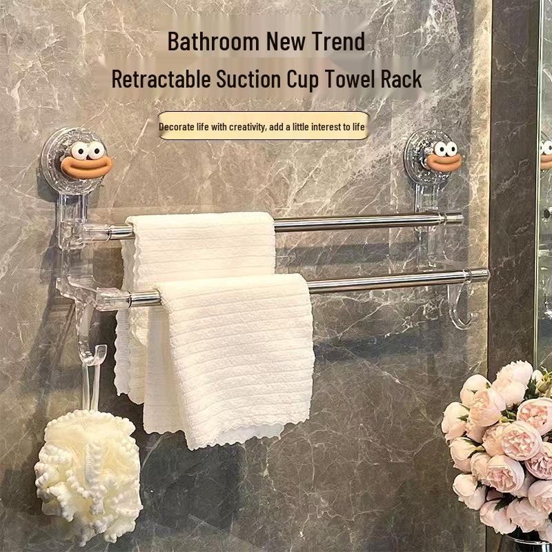 No-Drill Telescopic Suction Cup Towel Rack for Bathroom Storage