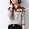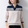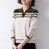 New Autumn Fashion Loose Versatile Polo Collar Panel Contrast Color Temperament Women's Knitted Long Sleeve Sweater — buy online with free worldwide shipping!