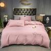 Solid Color Washed Cotton Quilt Cover with Simple Embroidery
