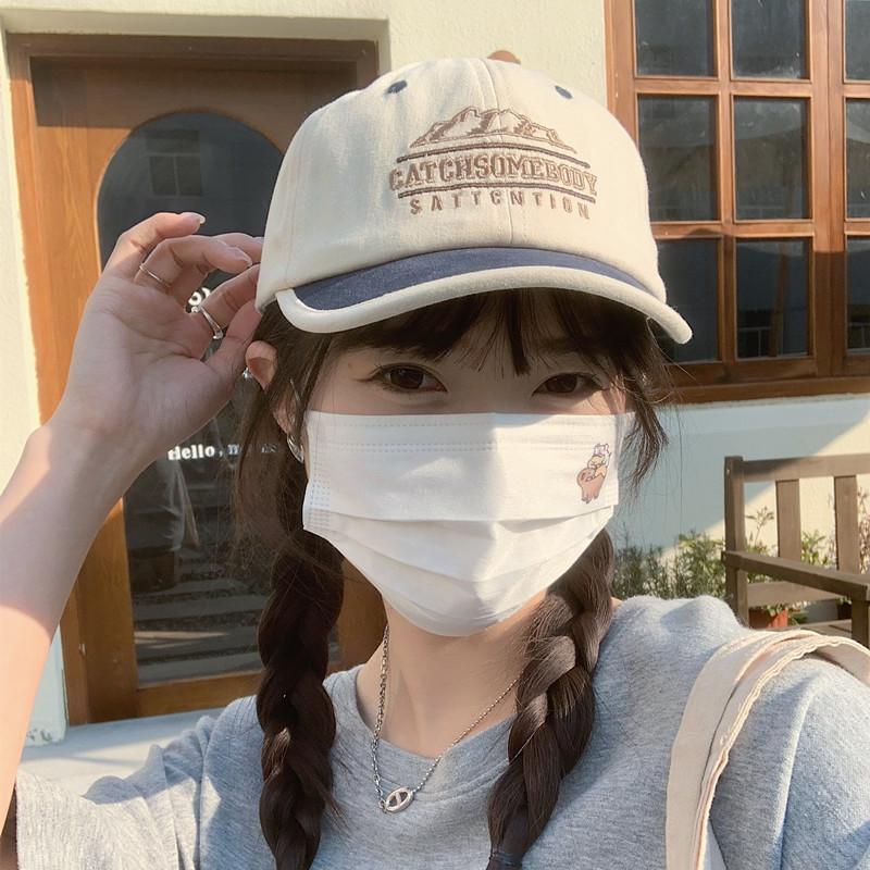 Niche Color Matching Embroidery Short Brim Cap Female Face Small Sunshade Baseball Cap Parent-child