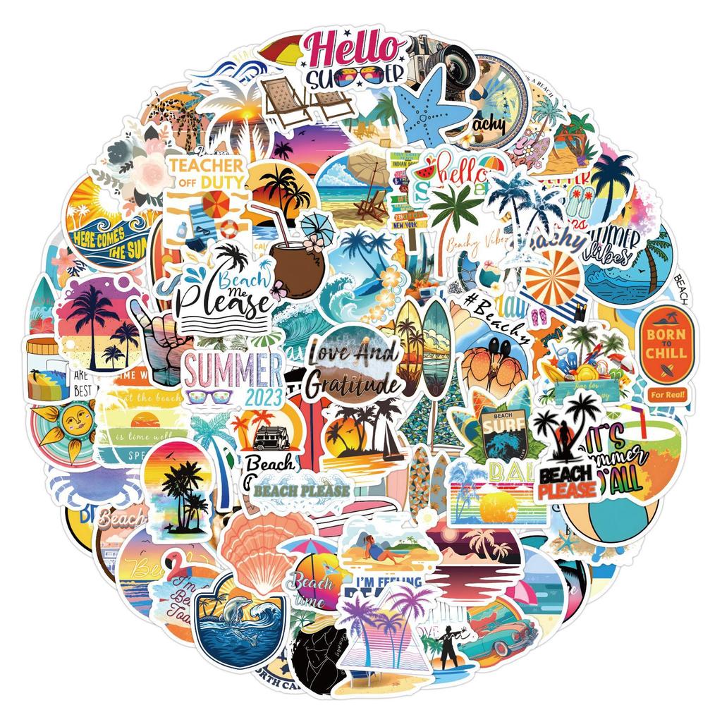 120 Summer Coconut Tree Beach Graffiti Stickers Skateboard Car Mobile Phone Kettle Decoration Stickers