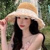 Lace Flower Straw Hat Women's Summer Sunshade Sunscreen Hat Seaside Beach Sun Hat Big Brim Showing Face Small Bucket Hat