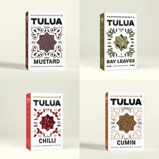 Tulua Natural & Organic Whole Spices Combo Pack offers a premium selection of essential Indian spices in convenient quantities, perfect for everyday cooking. This pack includes Cumin Seeds, Mustard Seeds (1x100g each), Bay Leaf, and Kashmiri Chilli (1x50g each), all sourced from high-quality, natural, and organic ingredients. These spices are carefully selected and processed to retain their natural aroma, flavor, and nutritional value.