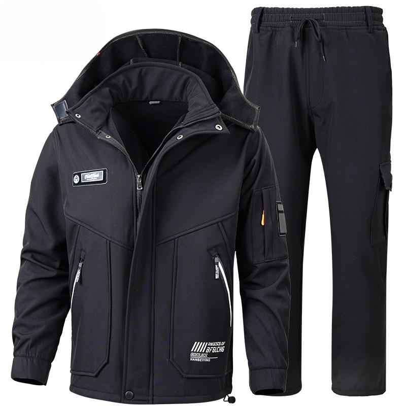 Autumn and Winter Plus Velvet Thickened Jacket Suit, A Complete Set of Windproof and Water-repellent Outdoor Cold-proof Warm Overalls