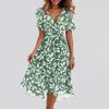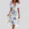 Women's Fashion Casual V Neck Short Sleeve Ruffled Vintage Printed Dresses