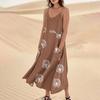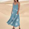 Women's Casual V Neck Dot Print Sleeveless Pocket Suspender Dress