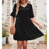 Women's Fashionable And Casual Flared Sleeve V-neck Solid Color Loose Dress