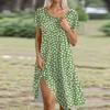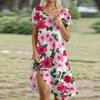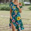 Short Sleeve Boho Dress For Women Casual Loose Fit Summer Sundress Floral Print Dress With Pockets