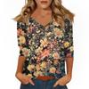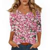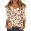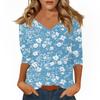 Women's Tops Three-quarter Sleeve Shirt V-neck Loose Casual Shirt Print T-shirt