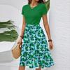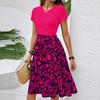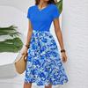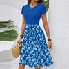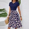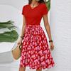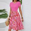 Women's Casual Fashion Belted Floral Print Short Sleeve Round Neck Elegant Dress