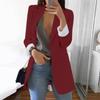 Women Solid Open Front Pockets Cardigan Formal Suit Long Sleeve Blouse Coat