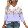 Women's Casual Tops V Neck Pull Stripe Prints Seven Sleeve Tops