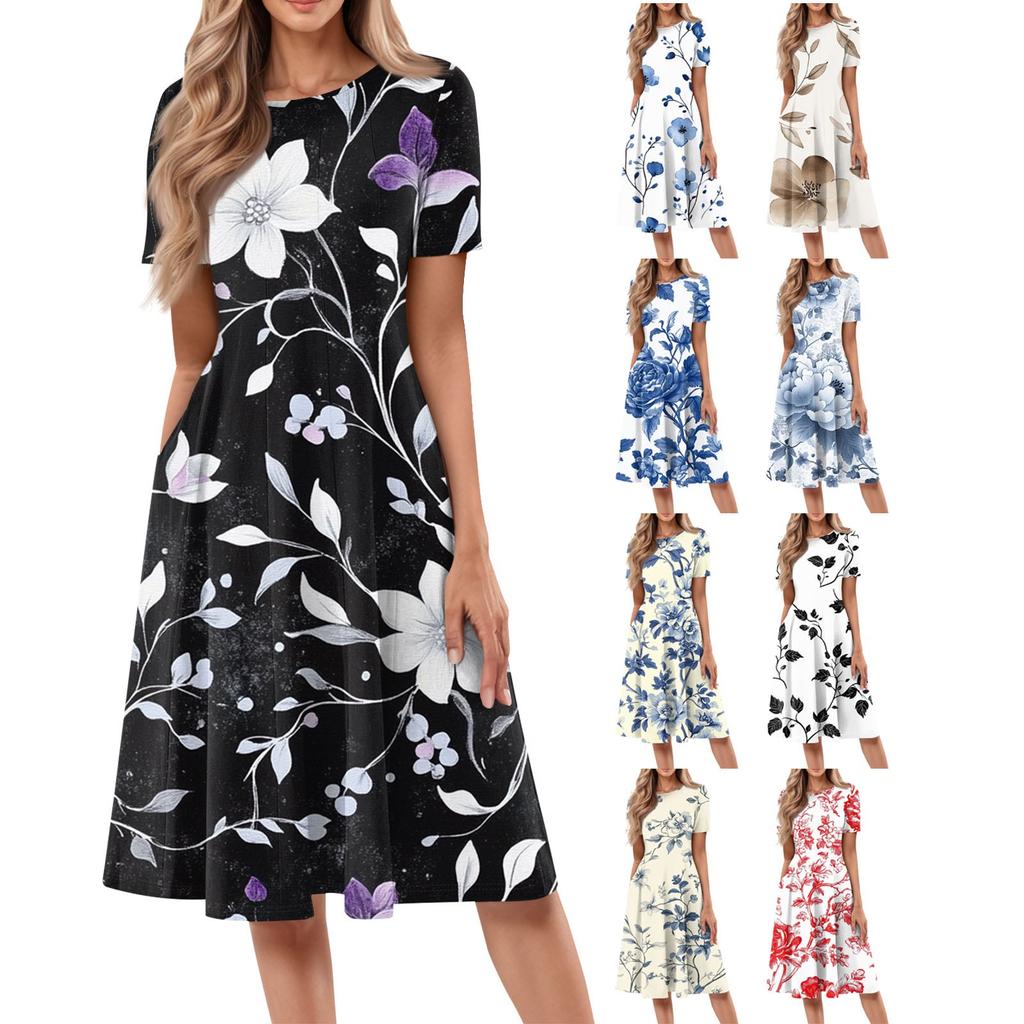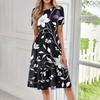 Women's Fashion Short Sleeve Vintage Printed Dress Cosplay Party Evening Dress