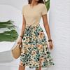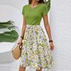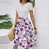 Women's Casual Fashion Belted Floral Print Short Sleeve Round Neck Elegant Dress