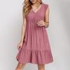 Ladies' Casual And Fashionable Solid Color Dress, Loose Sleeveless Waist Cinched Dress