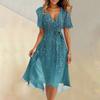 Women's Summer Fashion V-Neck Flared Dress Short Sleeve Floral Dresses