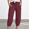 Women's Summer 3/4 Trousers Summer Trousers With Pockets Causal Loose Trousers Fabric Trousers Sport Leisure Beach Trousers