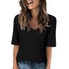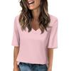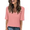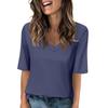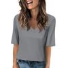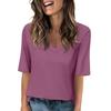 Women's Solid-color V Neck T Shirts Half Sleeve Tops Printed Casual Summer Tees T Shirt Blouse