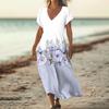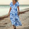 Fashion Women's Summer V-Neck Short Sleeve Floral Print Beach Dress