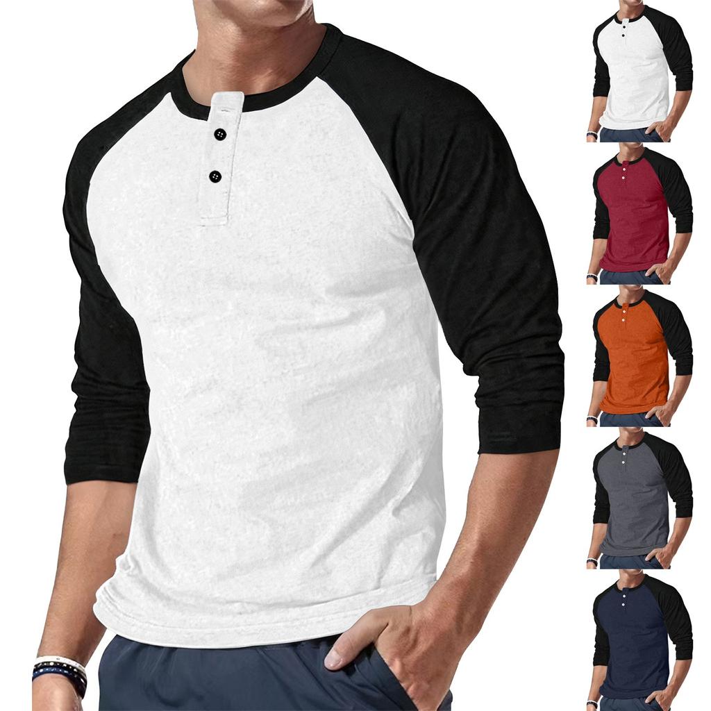 Men's Casual Button-neck Two-tone Shoulder Long Sleeve Top — buy online with free worldwide shipping!