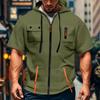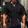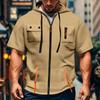 Men's Casual Short-sleeved Sweatshirt. Loose And Breathable Solid-color Sweatshirt Jacket With Multiple Pockets And A Zipper.