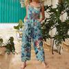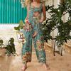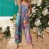 Women's Fashion Casual Loose Back Straps Wide Leg Vintage Printed Jumpsuit