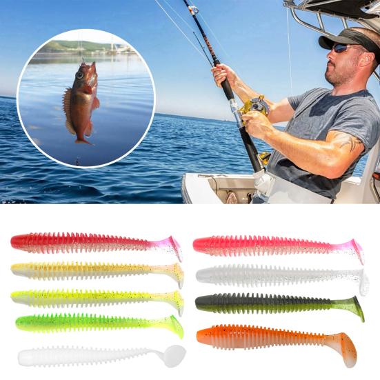 Boasting a robust flat paddle tail, these soft plastic baits deliver impactful slapping and vibrating movements upon retrieval. The distinct T-tail design provides an irresistible action that attracts fish by simulating wounded or fleeing prey.