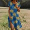 Short Sleeve Boho Dress For Women Casual Loose Fit Summer Sundress Feathers Print Dress With Pockets