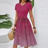 Women's Casual Fashion Belted Floral Print Short Sleeve Round Neck Elegant Dress