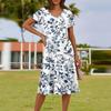 Ladies Summer Fashion Casual Floral Print V-Neck Short Sleeve Pocket Dress