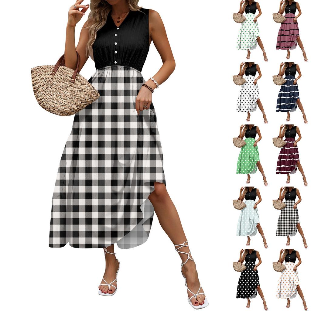 Women's Casual And Fashionable V-neck Sleeveless Printing Mid Length Dress — buy online with free worldwide shipping!