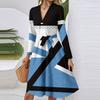 Women's Fashion Casual V-Neck Long Sleeve Waist Floral Print Midi Dress — buy online with free worldwide shipping!