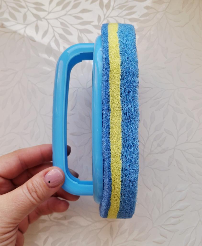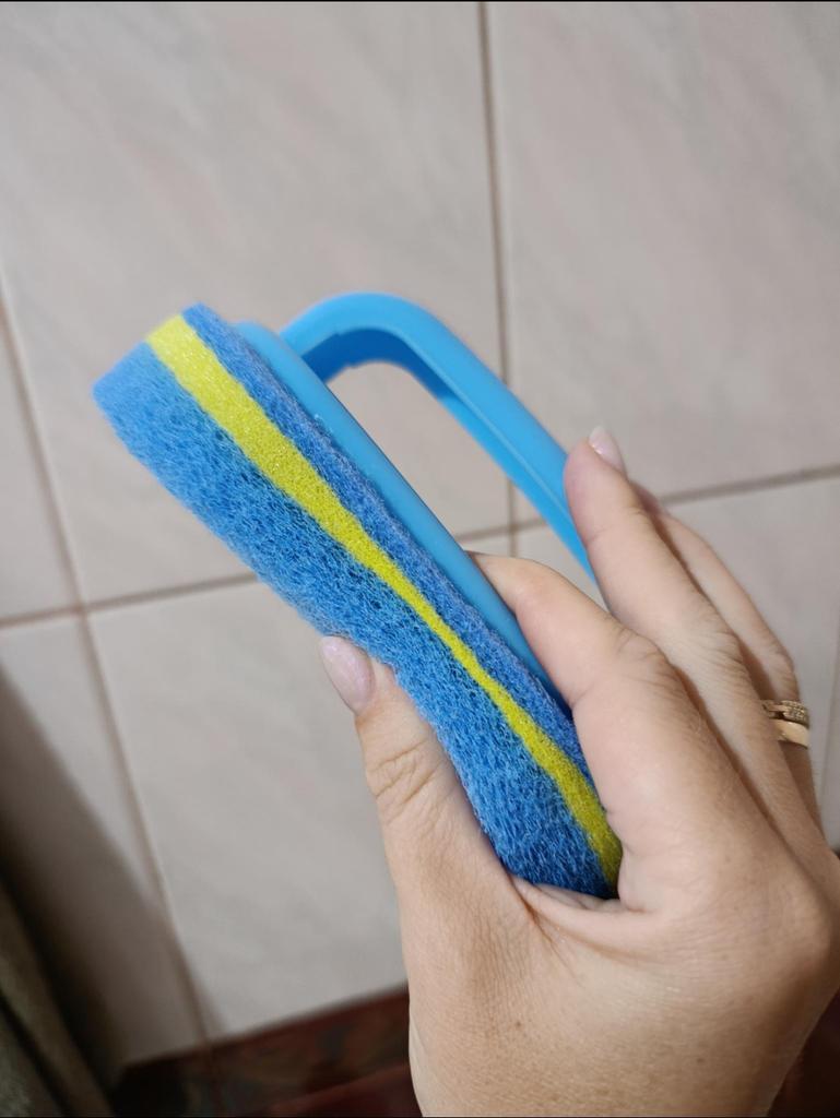Universal 3-layer sponge with a handle for washing dishes, baths, tiles and cleaning the entire apartment. ✔️The sponge has a convenient shape that easily washes all hard-to-reach places. ✔️The brush is equipped with an ergonomic handle, comfortable, durable, thanks to which now your hands will not come into contact with the detergent. ✔️This sponge with handle consists of three layers. ✔️Size: 16*9.4cm ✔️A large sponge saves a lot of time for cleaning, compared to a small and usual brush. ✔️For wide surfaces, the sponge on the handle is just perfect - thanks to its large area and its durable material, it easily and quickly removes all dirt and stains. 👍I have already tested the sponge while cleaning the bathroom and I can say with confidence that it does its job excellently ⭐⭐⭐⭐⭐ Satisfied with the order. I recommend!