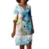 Women's Spring and Summer Fashion Painting Printed Five Sleeve Multi Color Medium Length Dress — buy online with free worldwide shipping!