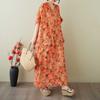 Women's Vintage Long Dress with Cotton and Linen Patterns