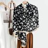New Camellia Black and White Silk Scarf Cotton and Linen Feel Scarf Autumn and Winter Warm Fashion Shawl Scarf