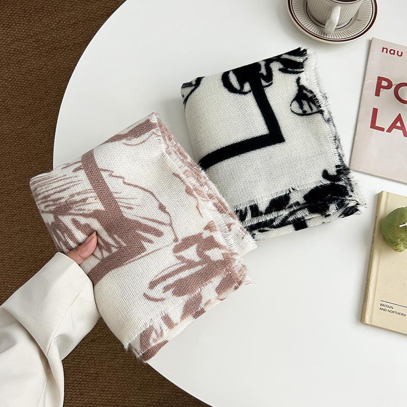 Autumn and Winter High Sense Fashion Imitation Cashmere Printed Scarf College Style Sweet Lady Design Sense Outer Shawl