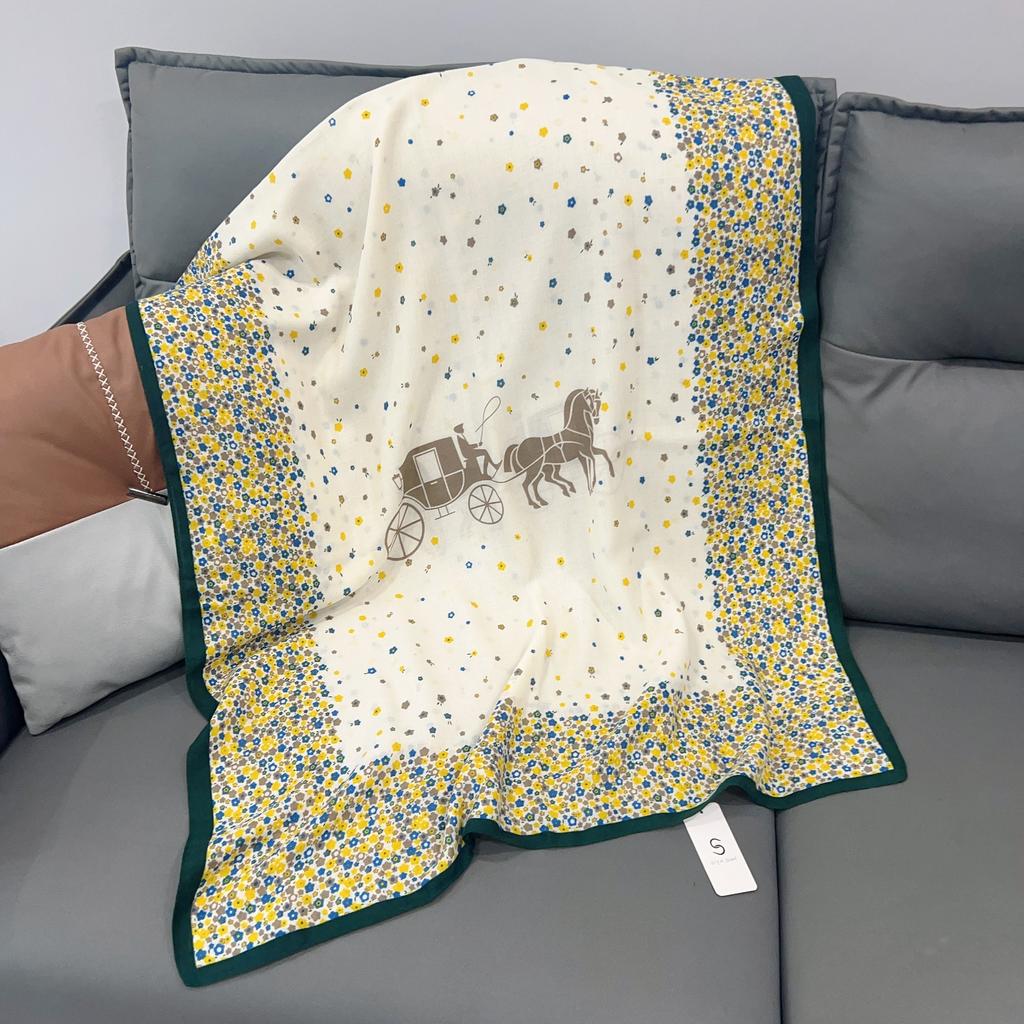 Elegant Small Flower Mist Blue Autumn Scarf Women's New Cotton and Linen Shawl Simple Temperament Yarn Scarf Warm Decorative Scarf
