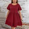 Ladies' Large Size Casual And Fashionable Solid Color Dress, Loose Short Sleeved Waist Cinched Dress