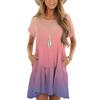 Women's Fashion Casual Round Neck Short Sleeve Ruffle Gradient Printed Dresses — buy online with free worldwide shipping!